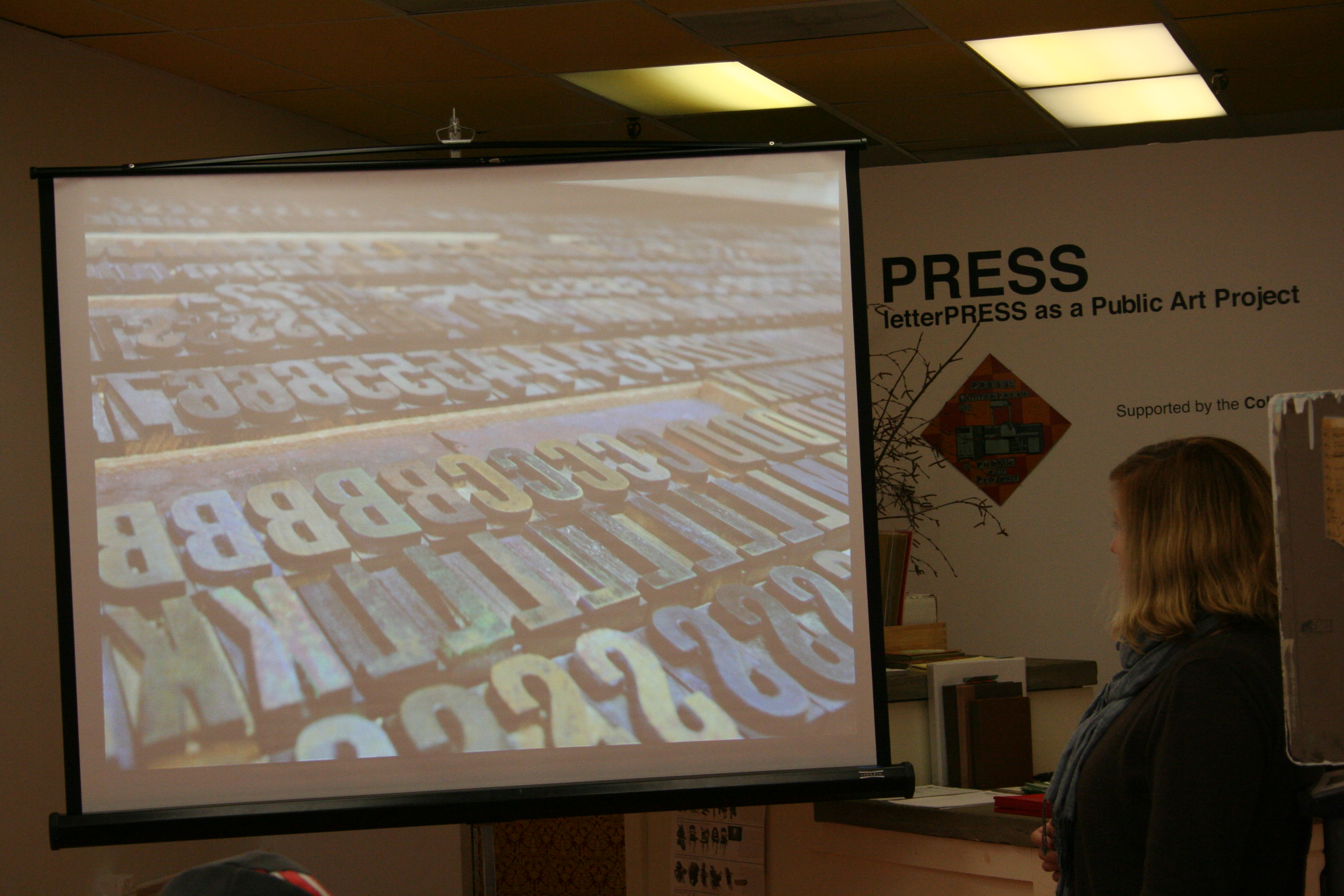 Check out some photos of Kyle’s Type truck below and her time spent at PRESS. She has been on the road for four months now. Kyle started in her hometown of Portland, Oregon to come all the way across the country to Portland, Maine! She was In North Adams today and will be back in Oregon in about six months from now, she told those who were at her talk in PRESS where chairs were set up next to the Vandercook in the space!
