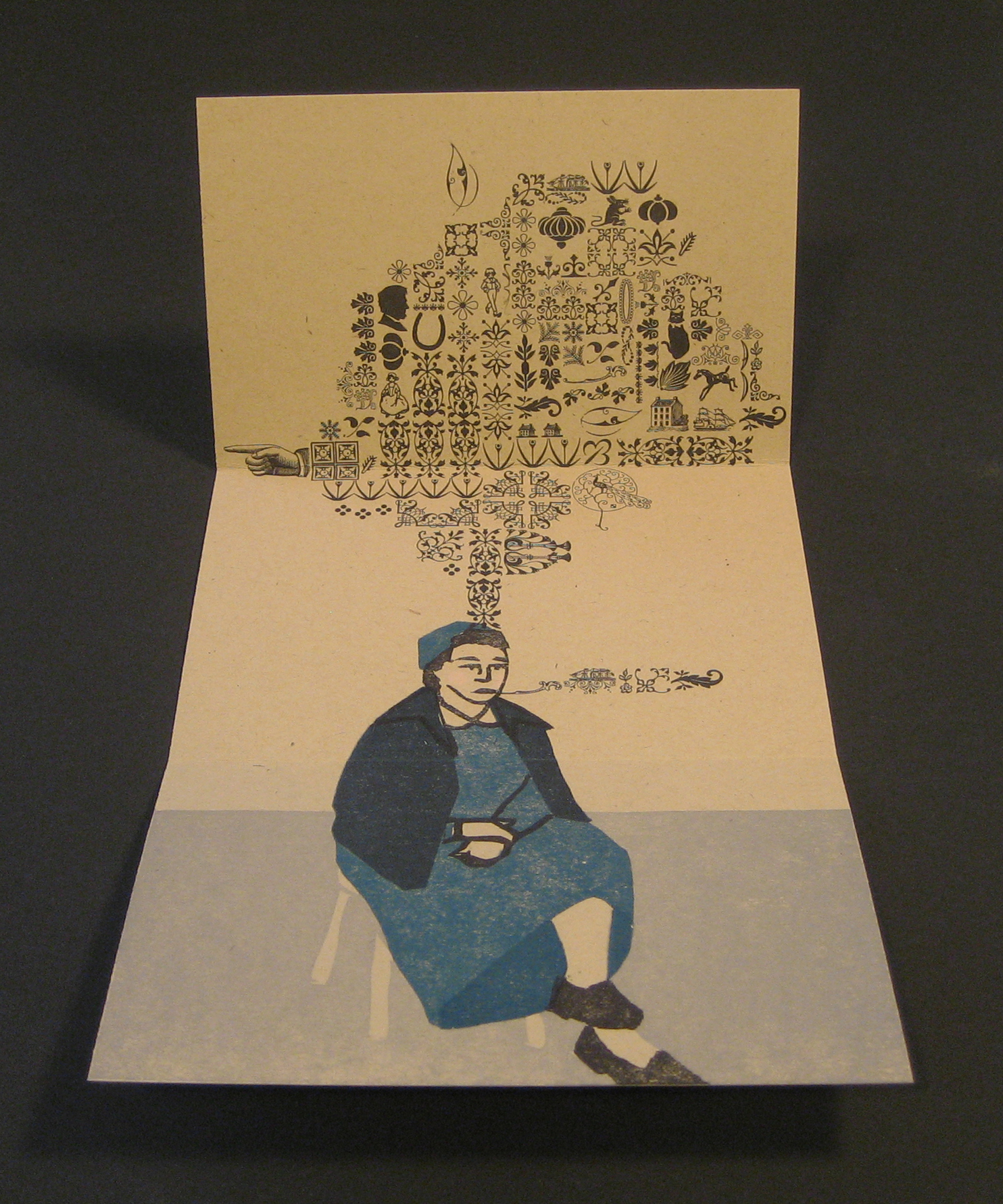 Type High is an exhibition that resulted from work created by students enrolled in “Art on the Press”, taught by Katie Baldwin at the Book Arts Center at Wells College in Aurora, NY. This class provided an intensive focus on tools, materials, concepts and techniques relevant to relief printing. Technical skills were gained in setting type, carving images, registration of multiple colors, and printing on the Vandercook presses. Content was developed through the exploration of personal work in printmaking. Through workshops, discussions, critical analysis and making prints students developed sophisticated ways in which printmaking became a vehicle for the expression of ideas, content and personal voice.
