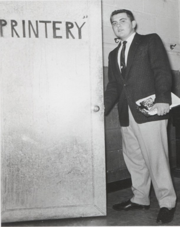 My dad recently sent me this wonderful picture of him as a young man entering the PRINTERY at St. Bonaventure Preparatory School in Wisconsin.