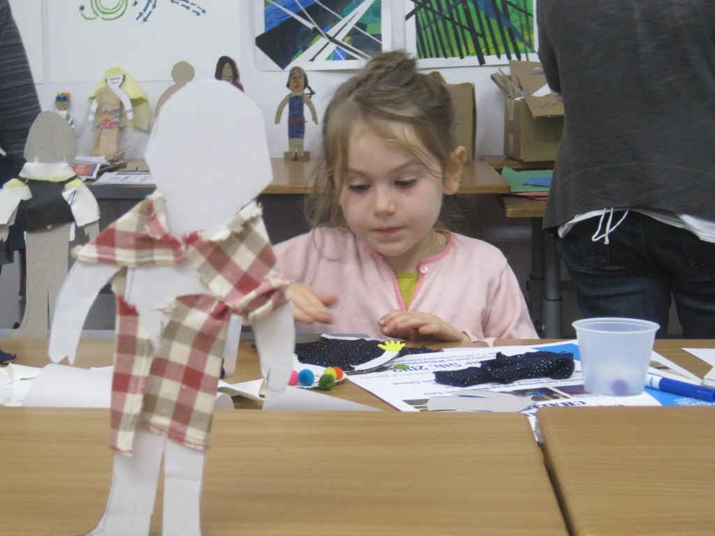 Along with the usually activities with an opening, in our classroom we had an IS183 Art Workshop, which allowed kids, young and old, to dress up and decorate their own cardboard person. Kurt Kolok screen printed T-Shirts and posters for the Save St. Francis mission. Also, Lisa Donovan signed books for her “Integrating the Arts Across the Content Areas” series, and gave a few remarks as well.