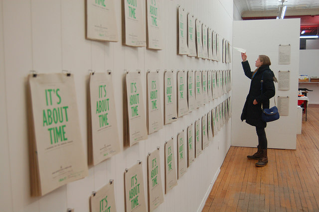 “Time. What is it?” “How do you save it?” “How do you spend it?” “Can you make more of it?” ILSSA It’s About Time: A Workbook For The Working Person ask these questions and 24 more. In return, the questions are visually and verbally explored by 48 participating members of Impractical Labor in Service of the Speculative Arts (ILSSA), an organization for makers who use obsolete technology in conceptual or experimental ways. The completed workbooks comprise the exhibition.