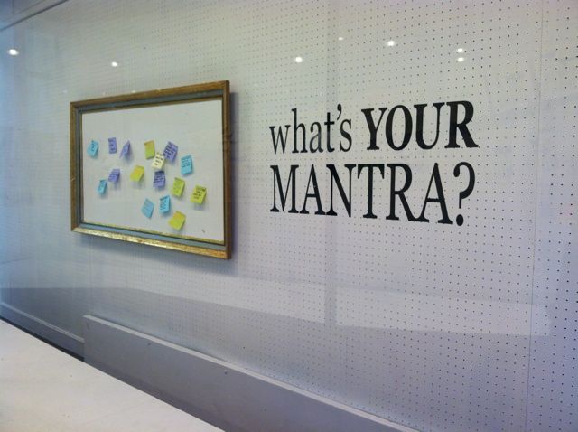 So come in and pop your mantra on a post-it, ready to add to our collection! If you are not local, write your mantras in our comments and we will add them to our window.