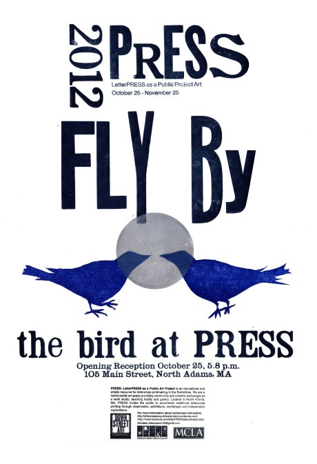 On Thursday, Oct. 25, PRESS: Letterpress as a Public Art Project will open its fifth DownStreet Art 2012 installation, “Fly By: The bird at PRESS.”